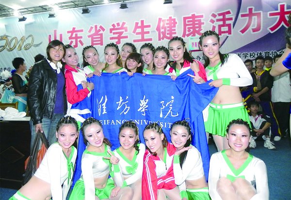 本站讯 日前,由山东省教育厅主办、山东省日照第一中学承办、山东省学校体育协会协办的2012年山东省学生健康活力大赛在日照第一中学举行。幼教特教师范学院选派学前教育专业学生组成代表队,代表我校参加了舞蹈啦啦操比赛并获B组第二名。