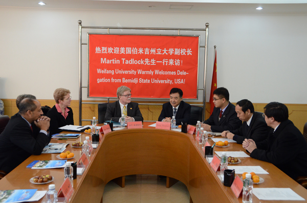 在校期间,客人参观了北海国际学院、体育馆、图书馆及潍坊名人文化馆。