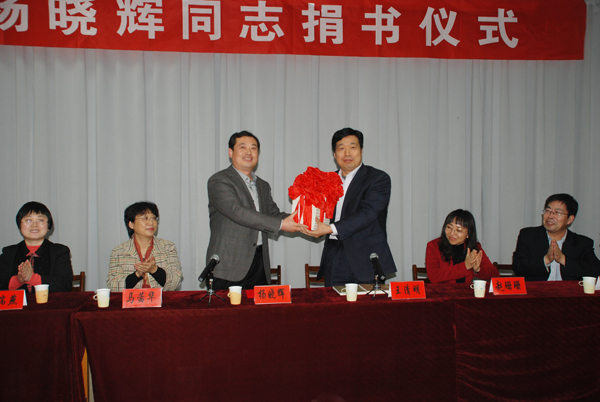杨晓辉毕业于我校文学与新闻传播学院1989级文秘专业。他从政二十多年来,在繁忙的工作之余,笔耕不辍,特别是在党风廉政建设方面有深入的研究,编写了《清廉文集》。为了感谢母校的培养,他将《清廉文集》360册捐赠我校图书馆。捐书仪式上,杨晓辉深情回顾了母校老师对自己的关怀与人生启迪,表达了对母校的眷眷深情。他表示,将会一如既往地支持学校的建设与发展。