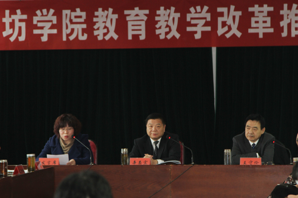 辛丕宏就进一步深化教育教学改革的有关问题讲了四点意见。一是全面健全完善本科教学质量保障体系。下一步深化教育教学改革,我们要对整个的人才培养方案重新审视。这就需要我们进一步解放思想、实事求是、与时俱进、求真务实。我们要主动适应高等教育大众化的形势要求,牢固树立人才培养的中心地位,全面正确地把握高等教育质量的内涵。二是扎实抓好课程建设这个关键环节。下一步的着力点和突破口应该从课程建设入手。这包括课程体系的顶层设计,学科、专业、课程建设有机结合,切实加强课堂教学,加大实践教学和创业教育等方面。三是加强和改进新时期大学生工作。一要进一步树立一切为了学生健康成长的思想;二要筹备实行书院制,确保新学年开始能够实行;三要采取和落实服务学生的一些新举措。四是进一步加大统筹协调推进力度。奋力争创山东省应用型特色名校,我们要重视过程。为深化教育教学改革,要充分发挥学术委员会等专业组织的作用;要及时调整完善有关政策;部门要转变作风,提高服务水平和效率;落实教学院部的主体责任。