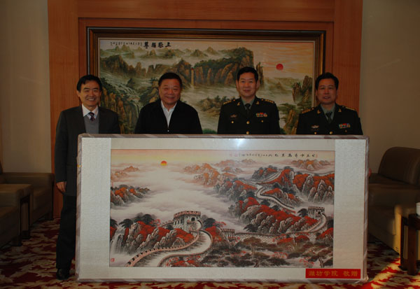 本站讯 2月2日,党委书记辛丕宏、院长王守伦在学校办公室、学生工作部负责同志陪同下,分别到潍坊军分区和驻潍某部进行了走访慰问。座谈中,辛丕宏介绍了学校近年来的发展情况,并代表学校对驻潍部队的关心与支持表示感谢,希望能进一步加强军地共建。