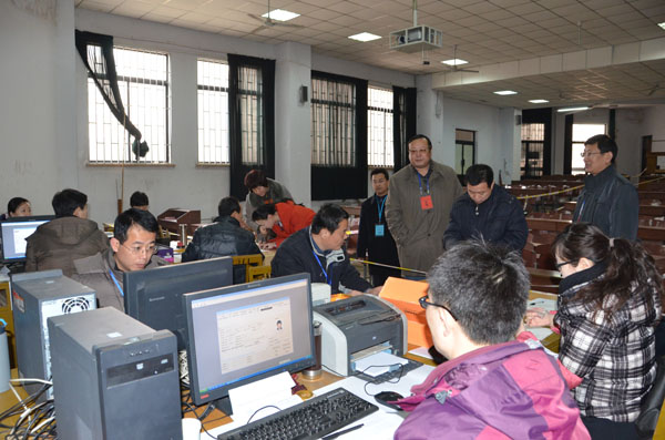 本站讯 2月24日,副院长冯滨鲁在招生就业处负责同志的陪同下,察看了我校2013年艺术类专业招生考试、报名现场情况。对考试组织安排、考场纪律、考试环境进行巡视。招生报名、考试现场组织严密、秩序良好。