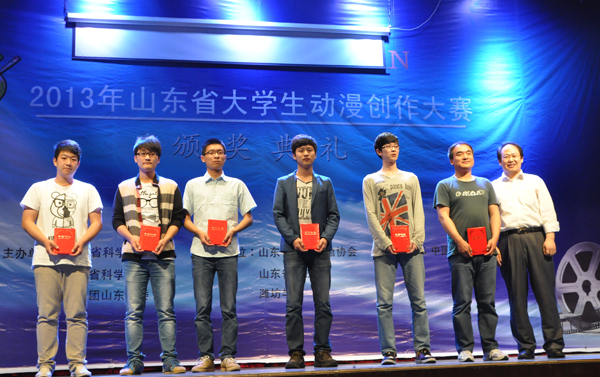 本站讯 5月26日,2013年山东省大学生动漫创作大赛颁奖典礼在我校举行。教师教育学院吴倓等三名同学获命题类一等奖。副院长冯滨鲁出席典礼并致辞。省科协学会、省科技厅、省科技馆有关负责同志出席了本届动漫大赛的颁奖典礼。