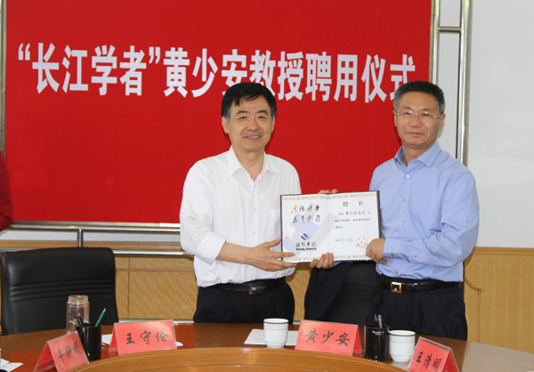 本站讯 近日,“长江学者”特聘教授黄少安正式受聘为我校教授、经济管理学院名誉院长。