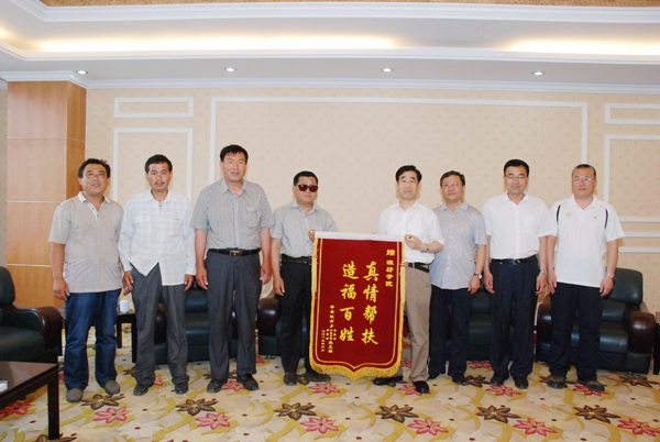本站讯 6月5日,我校干部驻村帮包的聊城莘县俎店乡李楼村、刘营村、宁安洲村党支部书记及村民代表等一行5人,来校并向学校赠送上书“真情帮扶,造福百姓”的锦旗,感谢我校及驻村帮包干部为该村做出的贡献。党委副书记牛钟顺会见了客人。党委组织部负责同志,我校在莘县驻村帮包的两批“第一书记”参加了活动。