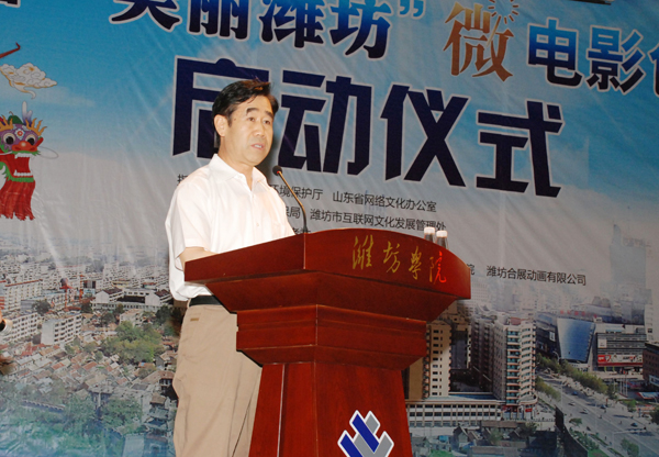 牛钟顺在致辞时简要介绍了学校的基本情况,以及学校在生态建设和环境保护方面的做法和取得的成绩。他表示,学校将以此次活动为契机,发挥相关专业优势,积极参加“美丽潍坊”微电影创作,进一步增强环保意识和生态意识,以实际行动切实履行好保护环境的责任,在“四个潍坊”建设中做出更大的贡献。