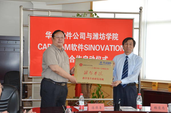 会上,山东山大华天软件有限公司负责人向我校赠送软件。冯滨鲁表示“三维CAD/CAM软件潍坊学院教学及专业研发基地”的建成对进一步加强校企深度融合,改善我校实践教学与科研条件,提高专业学科建设质量,增强社会服务功能发挥重要的作用,为我校深入开展CAD/CAM技术教学、科研和社会服务搭建了更好的平台。希望双方能够在更广阔的领域加强合作,实现资源共享,校企双赢。