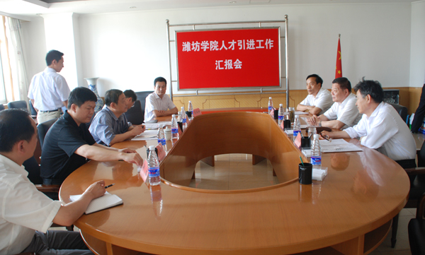 汇报会上,王守伦重点汇报了学校基本情况与2007年以来人才引进的情况。他说,学校对人才工作高度重视,成立人才工作领导小组,实施了“人才强校”战略和“2125”人才工程,制定了《潍坊学院“十二五”人才队伍建设工程专项规划》,出台了《潍坊学院学术带头人、学术骨干、中青年骨干教师选拔管理办法》、《潍坊学院关于进一步加强高层次人才引进和培养的实施意见》、《潍坊学院杰出青年人才支持计划选拔实施办法》等一系列政策措施,实行了岗位设置与聘用,签订了人才工作目标任务书,并将人才工作与单位目标责任制考核和个人年度考核紧密结合起来,使人才工作纳入了规范有序、健康发展的轨道。自2010年省人才工作领导小组实行年度考核以来,我校在2010年取得良好成绩的基础上,于2011年、2012年连续两年被省人才工作领导小组考核为优秀。王守伦还就2007年以来,学校自主招聘的博士、公开招聘的硕士和本科毕业生、按程序调入的人员等三种情况作了说明。他指出,从2013年开始,我校正式纳入了山东省管理,这是学校走向正规化、迎来全面发展的良好契机。学校将紧紧抓住这一契机,乘势而上。要按照有关部门的要求,全面搞好人事工作,积极争取省人社厅支持和指导,大力引进和培养高端人才,使学校在较短的时间内,逐步改变高层次人才数量少、质量低的现状,不断改善人才队伍结构。