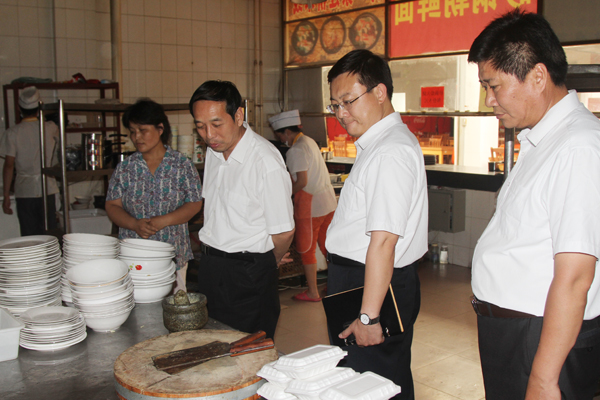 丁子信一行先后来到一号、二号餐厅,仔细查看主副食操作间、消毒间、切菜间、凉菜间、少数民族餐饮制作间、食堂食物留样检测间等。每到一处,他们都认真察看,并叮嘱饮食中心负责同志,在食材进货上要严格把关,并抓好加工和出售环节,确保学生的饮食安全。