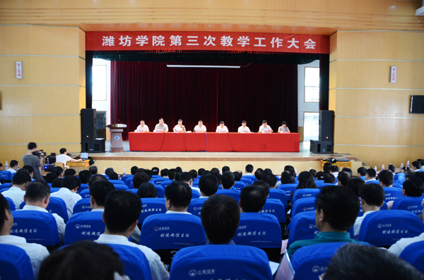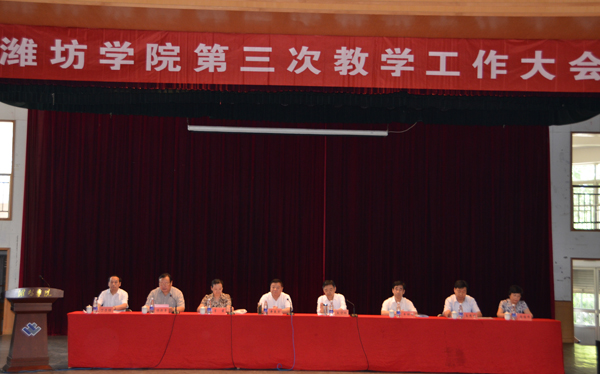 本站讯 6月20日,潍坊学院召开第三次教学工作大会。这是学校以实际行动贯彻落实党的十八大精神,积极融入到落实国家、全省《教育规划纲要》和我省高等教育内涵提升计划的一次重要会议。省教育厅高教处副处长李霞、学校党委书记辛丕宏、院长王守伦出席会议并讲话。