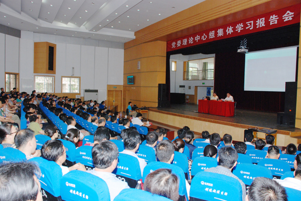 本站讯 7月4日,学校党委理论学习中心组在闻韶楼报告厅举行集体学习报告会。上海大学教育质量评估处处长、社区学院常务副院长宋少沪应邀作了题为《大船必能远航——浅论上海大学社区学院的改革与探索》的报告。党委书记辛丕宏主持报告会。他对为什么要试行书院制、我校先期组建的两个书院是什么情况进行了阐述,对试点中注意把握的几个问题、抓紧抓好有关筹建工作等提出了要求。