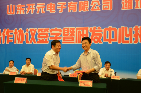 仪式上,开元电子有限公司董事长刘树高介绍了企业的有关情况。昌乐县县长高立伯代表县委县政府对双方的合作表示祝贺。