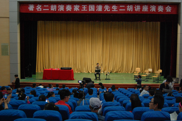 随后,王国潼在图书馆报告厅为学生们进行了3个小时的二胡讲座演奏会,并现场为学生进行耐心指导。