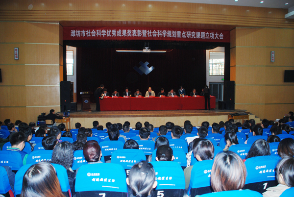 本站讯 10月24日,潍坊市社会科学优秀成果奖表彰暨社会科学规划重点研究课题立项大会在我校举行。院长王守伦出席大会。市委宣传部、市纪委、市社科联等单位负责人以及我校部分师生参加了大会。