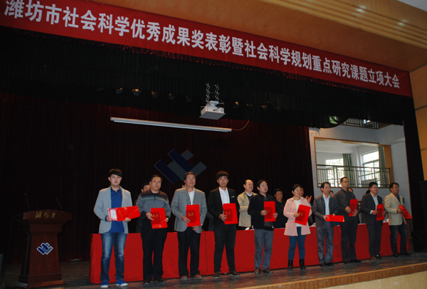 日前,潍坊市第二十一次社会优秀成果奖、第二届社科研究十佳拔尖人才、优秀人才评选和2013年度社会科学规划重点研究课题立项、社会科学普及读物出版资助项目立项工作结束。24日,对获奖者进行了表彰。据了解,本次优秀成果评奖,参评成果共有311项,评出一等奖20项,二等奖60项,三等奖86项,优秀奖145项。同时有39个单位21名个人获组织工作奖。今年还举行了潍坊市第二届社会科学研究十佳拨尖人才、优秀人才评选,评出了社会科学研究十佳拔尖人才10名、十佳拔尖人才提名奖10名和30名优秀人才。2013年度潍坊市社会科学规划重点研究课题立项,共申报课题364项,160项课题获得立项。其中资助课题20项。为了支持滨海发展,今年在立项的160项课题中设立了30项 “突破滨海发展”专题课题。其中,资助课题10项。有40个单位获申报组织工作奖。今年申报社会科学普及读物出版资助项目21项,6项被确立为出版资助项目。