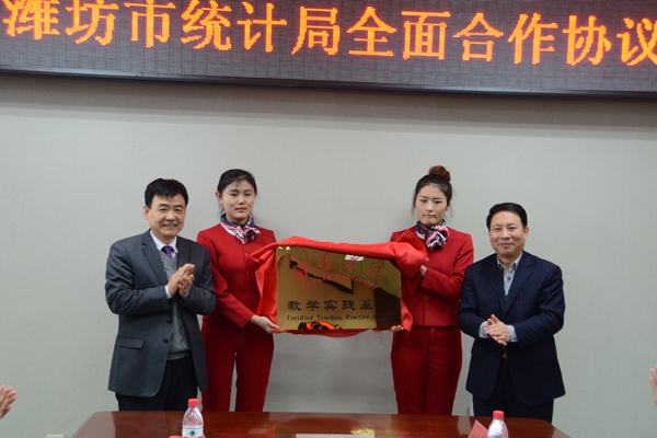 揭牌仪式上,王守伦与潍坊市统计局签订了全面合作协议。双方将对学生实习实训、专业技术服务、人才资源共享等多方面进行全方位的深层次合作。