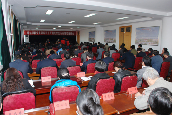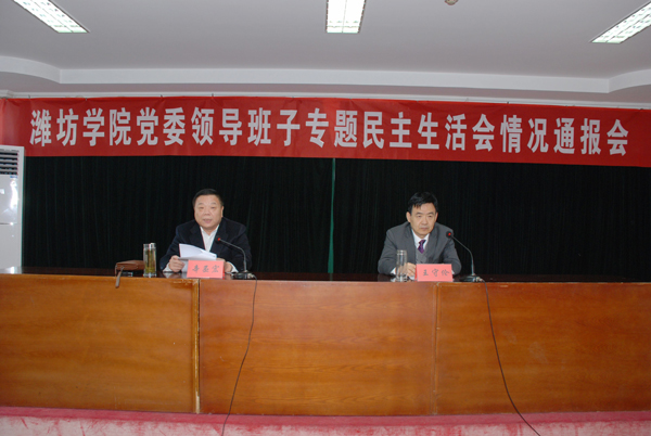 本站讯 11月19日,根据学校党的群众路线教育实践活动安排,学校召开党委领导班子专题民主生活会情况通报会。党委书记辛丕宏在会上作了情况通报,对下一步工作提出要求。院长王守伦主持会议。学校领导牛钟顺、冯滨鲁、王清明、丁子信、马茜华出席会议。