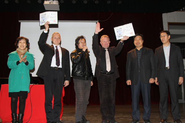 本站讯 11月18日,乌克兰利沃夫利先科国立音乐学院的院长易格里、副院长奥斯达铺受聘为学校客座教授。副院长王清明为其颁发了聘书。