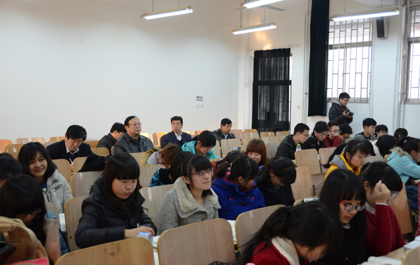 本站讯 12月2日,数学与信息科学学院李敏老师为文学与传播学院2013级广播电视学专业的学生上了一堂精彩的大学文科数学课,同学们在课堂上聚精会神的听课,积极与老师互动,整堂课气氛活跃,认真。文理科教学的融通结合,让同学们补充更全面的知识营养。学校副院长冯滨鲁,教务处,文学与新闻传播学院、数学与信息科学学院相关人员与同学们共同听了本堂课。