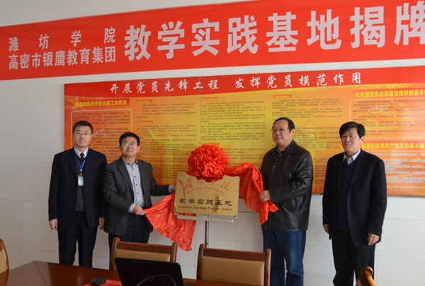 本站讯 12月6日,我校高密市银鹰教育集团教学实践基地揭牌仪式举行。副院长冯滨鲁与高密市教育局负责人共同为基地揭牌。学校教务处、音乐学院负责同志参加了揭牌仪式。