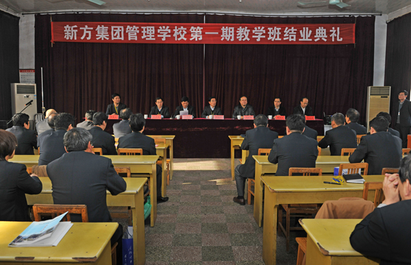 本站讯 12月15日上午,由我校与新方集团联合举办的“新方集团管理学校第一期教学班”结业典礼在新方集团管理学校举行。副院长冯滨鲁,新方集团董事长王明峰出席典礼。继续教育学院、学校办公室负责同志,第一期教学班全体学员及继续教育学院培训科有关人员参加了典礼。本期教学班从5月份开始,历时8个月的时间。