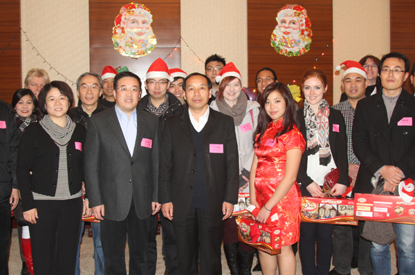 丁子信代表学校致圣诞贺词。他说,2013年学校在包括各位外籍教师和专家在内的全体师生员工的共同努力下,教学、科研、管理等各方面工作都取得了显著成绩。新的一年,我们将继续按照“抓基础、上水平、创特色”的总体要求,紧紧围绕提高人才培养质量这一核心,实施“教学立校、科研兴校、人才强校、特色名校”战略,加快应用型特色名校建设,实现学校整体实力的全面提升,希望外籍教师和外国专家发挥更大作用。丁子信还向外教们赠送了圣诞礼物。
