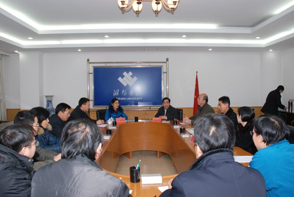 本站讯 12月23日,以潍坊市委组织部人才工作科主任科员刘兆萍为组长的市人才工作领导小组考察组一行2人来校,对我校的第三期“鸢都学者”考察人选进行考察。党委副书记牛钟顺主持情况汇报会。考察组听取了有关负责同志的情况汇报,查阅了有关资料,实地考察了实验场所,与考察人选进行了面谈。