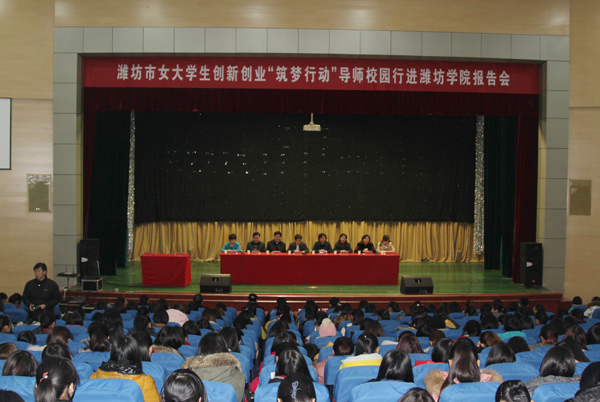 本站讯 为鼓励、引导和帮助我校女大学生创业就业,12月24日,由市妇联和我校联合举办的潍坊市女大学生创业“筑梦行动”导师校园行报告会在我校图书馆报告厅举行。我校党委副书记牛钟顺主持报告会。潍坊市妇联主席田素英与我校纪委书记马茜华签订合作协议。