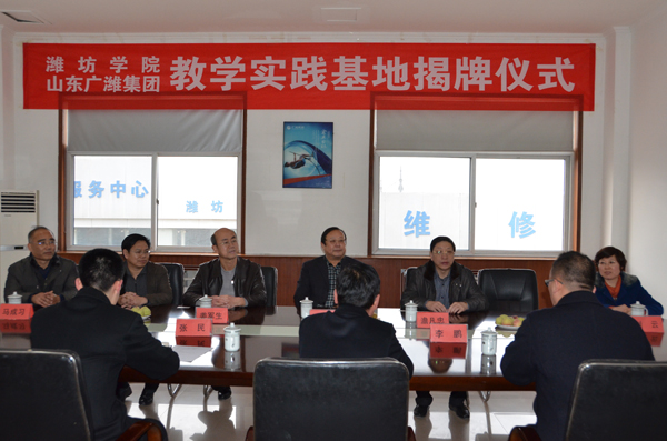本站讯 1月8日,潍坊学院教学实践基地揭牌仪式在山东广潍集团举行。副院长冯滨鲁为基地揭牌。