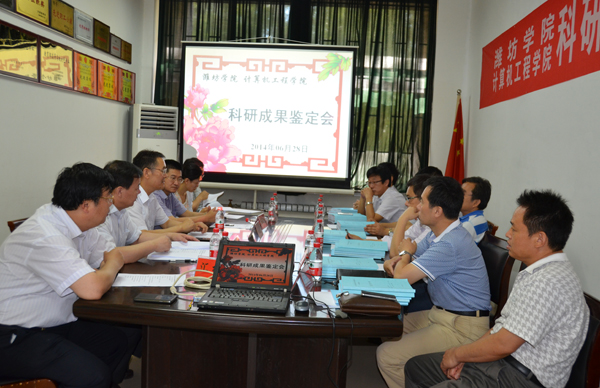 本站讯 6月28日,计算机工程学院的8项科研成果通过了潍坊市科技局组织的成果鉴定和验收。副院长赵光强、潍坊市科技局副局长李振忠出席鉴定验收会。会前,副院长丁子信会见了出席鉴定验收会的专家和市科技局领导。