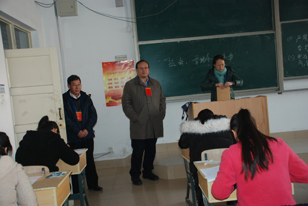 本站讯 12月19日,全国大学英语四六级考试举行,我校设考点。院长冯滨鲁与潍坊市招生考试办公室有关负责同志分别到考务办公室和考场进行了巡视。