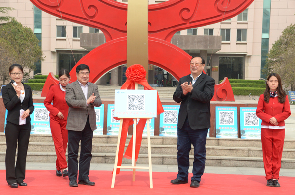 本网讯 4月8日,我校官方微信平台上线启动仪式在图书馆楼前举行。党委书记孙文亮、校长冯滨鲁出席仪式并揭牌。