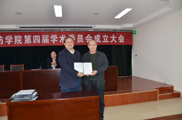 随后,学校举行第四届学术委员会成立大会暨第一次全体会议。新当选的学术委员会委员审议通过了《潍坊学院学术委员会章程》、《潍坊学院第四届学术委员会主任委员、副主任委员、秘书长选举办法》和《潍坊学院第四届学术委员会主任委员候选人名单》,并进行了投票选举。冯滨鲁教授当选为学校第四届学术委员会主任委员。丁子信、赵光强、逯怀新、李长明教授4人当选为副主任委员,曲振国教授当选为秘书长。冯滨鲁为新当选的学术委员会委员颁发聘书。