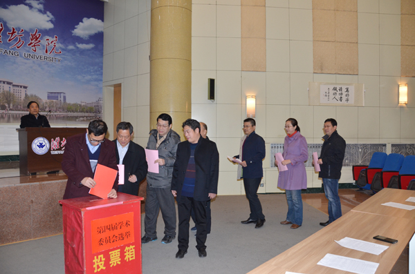 朱猷武在选举大会上对候选人产生的情况作了说明。根据教育部《高等学校学术委员会规程》和《潍坊学院章程》,学校筹备工作领导小组制定了《潍坊学院第四届学术委员会委员候选人提名确定办法》。按规定程序组织了大会选举过程,投票选举产生了学校第四届学术委员会。