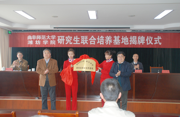 冯滨鲁在致辞中指出,曲阜师范大学、潍坊学院研究生联合培养基地的建立,为我校搭建了更为广阔的合作发展平台,必将促进学校在人才培养、科学研究、社会服务等多方面的实力提升,必将有力推动学校学科建设、科研水平和研究生培养质量的进一步提高,必将对我们实现省内同类高校一流、优势特色突出的综合类应用型大学的目标产生积极而深远的影响。他表示,我校将以基地揭牌为契机,严格按照研究生联合培养基地建设要求,不断加强师资队伍建设,特别是导师队伍建设,尽最大努力为联合培养研究生提供优质的教育资源,努力完成研究生联合培养任务,确保研究生培养质量。