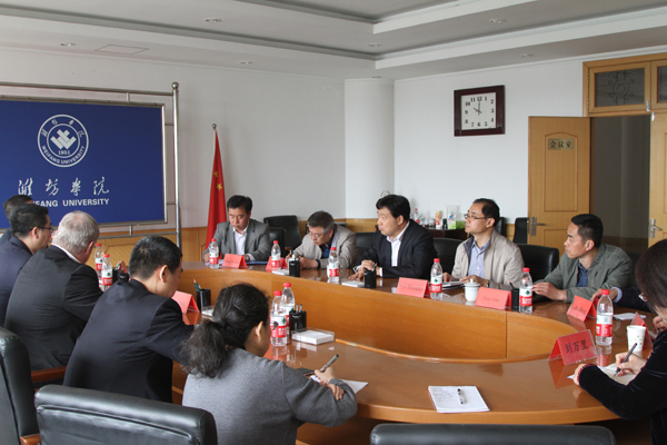 冯滨鲁首先对来宾的到访表示热烈欢迎,他说,东北州立大学是潍坊学院的合作院校,希望在现有合作基础上拓宽合作领域,进一步深化两校的合作。马克充分肯定了两校的合作,希望在合作办学、教师互访、学生联合培养等方面开展进一步合作。