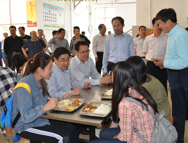 孙文亮、赵光强一行还实地查看了学生餐厅,与正在用餐的学生们进行了亲切交谈,了解饭菜品种、价格、质量和同学们的反响等。随后,孙文亮、赵光强一行在餐厅用了午餐。