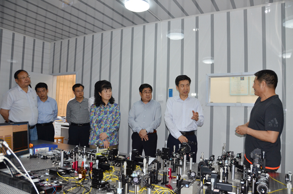 座谈会后,在孙文亮、冯滨鲁的陪同下,李宽端一行参观了我校省级重点实验室、“十三五”省高校重点实验室“多光子纠缠与操纵实验室”。实验室负责同志向李宽端一行详细介绍了实验室今年来的建设情况。李宽端饶有兴致地询问了实验室的研究方向和发展前景,叮嘱大家要加强团队建设,充实科研力量,与本领域的高端人才和团队保持密切联系,勇于冲击科研高峰,潍坊市将对这样的项目给予大力支持。