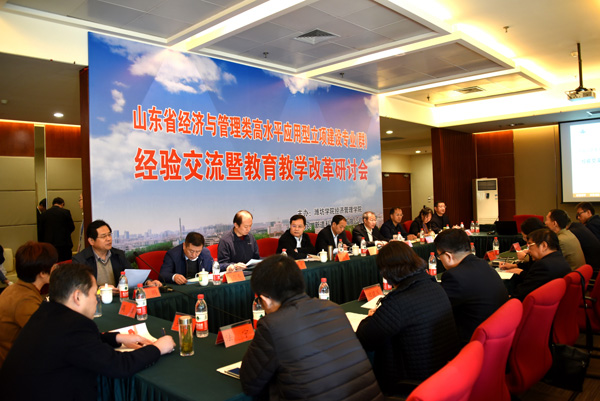 在为期两天的研讨会期间,与会专家进行了多层次、多形式的交流。来自山东工商学院、青岛大学、聊城大学、山东财经大学,济南大学、临沂大学、潍坊学院等院校经济管理类高水平应用型立项建设专业的专家做了典型发言。研讨会中还围绕经管类学科建设、课程建设、师资培养、实践教学、实验室建设等问题进行了交流。