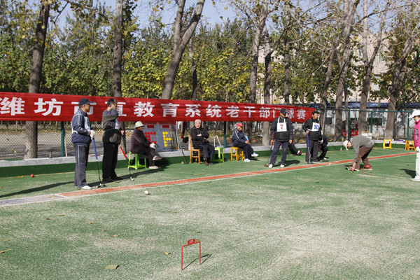 本网讯 11月10日上午,学校门球场首迎赛事,潍坊市直教育系统老干部门球赛拉开帷幕,潍坊医学院、山东畜牧兽医职业学院、潍坊中学、潍坊七中、广文中学和我校共6个单位的代表队参加了比赛。经过激烈角逐,潍坊医学院夺冠,我校门球队获得第二名。