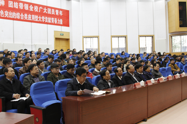 就进一步做好党的十九大精神的学习宣传贯彻工作,孙文亮要求,全校广大师生要学深悟透党的十九大精神;要分层面、多领域组织开展丰富多彩的学习宣传贯彻活动;要把学习贯彻党的十九大精神与市第十二次党代会确立的奋斗目标结合起来,与努力做好学校当前各项重点工作结合起来,以积极创建省内同类高校一流、优势特色突出的综合类应用型大学为抓手,进一步推进内涵发展、特色发展、创新发展、开放发展“四大战略”,奋力实现人才强校、教学立校、科研兴校、特色名校、文化塑校、科学治校“六大任务”,更好地服务潍坊经济社会发展,为推进潍坊“四个城市”建设作出新的贡献。