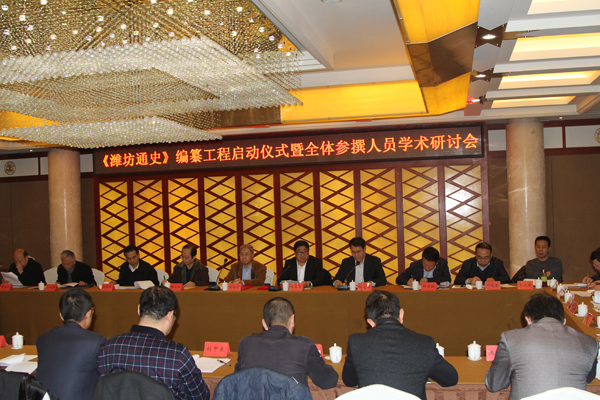 孙文亮在致辞时说,潍坊学院一直高度重视潍坊地方史的研究工作,并取得了不菲成绩。潍坊市委市政府委托潍坊学院负责《潍坊通史》编纂工作,不仅是对潍坊学院学术底蕴、学术能力的信任,更是校地合作,吸引域内院校参与地方文化建设的重要模式。作为潍坊域内的高等院校,编纂《潍坊通史》,凝结潍坊过往历史,弘扬潍坊传统文化,为潍坊的当代建设提供服务,也是潍坊学院义不容辞的责任。潍坊学院有一批学术功底深厚的教授、博士,有足量的文献资料,有能力编纂出一部高质量的《潍坊通史》。