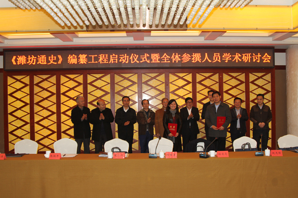 启动仪式上,《潍坊通史》编纂委员会副主任委员、总主编孙文亮,向参攥专家颁发聘任证书。《潍坊通史》编委会与相关单位签订了文献资料利用协议,科研处处长肖孟强代表《潍坊通史》编纂委员会与各卷首席专家签订编纂协议。