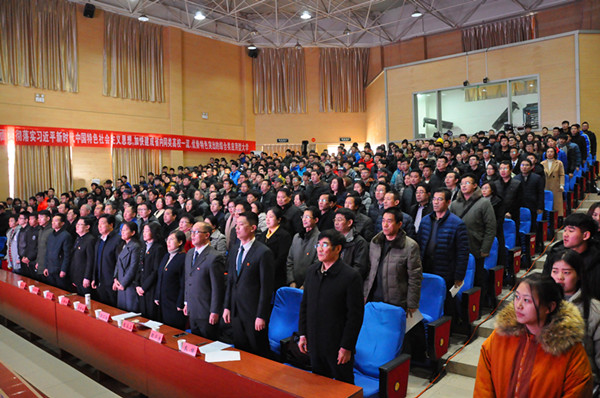 下午两点钟,宣讲会在庄严的国歌声中拉开了序幕。王清明致辞,他代表全校师生向宣讲团领导、专家的到来表示欢迎,总结了2017年我校学生思想政治工作取得的成绩,并希望今天与会的老师、同学好好学习、认真领会精神。