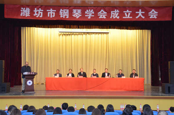 本网讯 4月16日,潍坊市钢琴学会成立大会在我校闻韶楼报告厅隆重举行。校长冯滨鲁、潍坊市文化广电新闻出版局副局长苗庆安、潍坊市民政局相关负责同志先后在成立大会上致辞。副校长朱猷武出席大会。我校音乐学院键盘教研室主任于乐丽副教授当选为学会会长,多名音乐学院教师当选为学会理事。