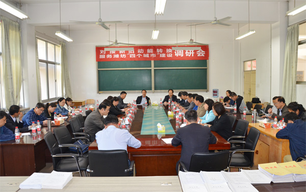调研会上,与会人员围绕服务新旧动能转换和潍坊“四个城市”建设这个主题,紧密结合自己所学学科专业和研究方向,介绍了自己的成果和研究项目,谈了自己的服务方向与合作意向,并针对学校层面做好服务新旧动能转换和“四个城市”建设提出了很多好的意见和建议。