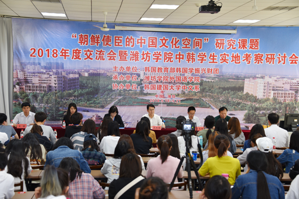 本网讯 由韩国教育部韩国学振兴财团主办,潍坊学院外国语学院承办,韩国建国大学中文系协办的,“朝鲜使臣的中国文化空间”研究课题2018年度交流会暨潍坊学院中韩学生实地考察研讨会,于5月18日至5月21日分别在我校和烟台市举办。副校长赵光强出席相关活动。