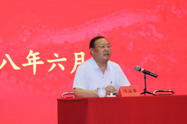 本网讯 6月11日,全国高校“学习新思想千万师生同上一堂课”活动潍坊学院分会场授课会在学校图书馆报告厅举行。校长冯滨鲁作为“山东高校习近平总书记重要讲话精神讲师团”成员出席并授课,党委副书记王清明主持会议,全校二级学院分管学生工作负责人,全体辅导员,学生代表共同听课。