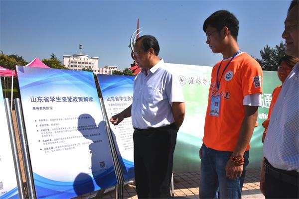 冯滨鲁在各学院迎新点和报到处认真查看新生报到情况,了解各学院迎新工作的新举措,仔细询问新生来校的感受,并与前来报到的新生合影留念,勉励他们要珍惜大学的美好时光,心怀理想,奋斗青春,让潍坊学院成为自己实现梦想的港湾和新起点。在弘德书院,冯滨鲁一行仔细查看了新生的住宿情况、生活用品安置情况和周边生活环境,对新改造公寓楼的安全保障措施仔细询问,并与新生家长和学生亲切交流。在安顺校区,王清明到特教幼教师范学院和教师教育学院迎新现场,询问了新生报到情况,到学生公寓查看新生住宿情况。他特别叮嘱学院和安顺校区管理办公室负责同志,要对来自寿光等受灾家庭的学生多加关注,给予更多的关怀和帮助。