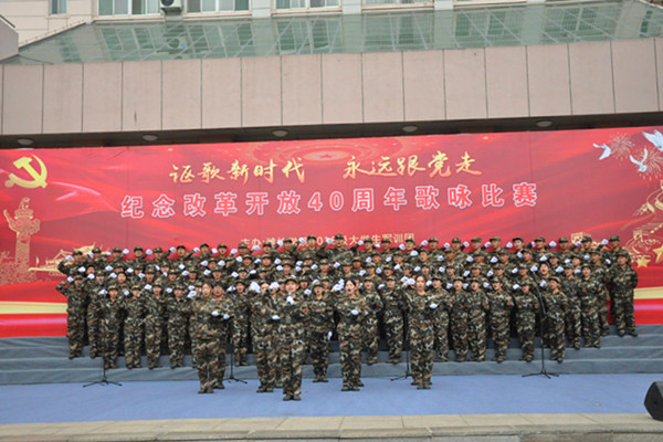 本网讯 “迎着风雨、旗帜飘扬,坚定跨越世纪沧桑,我们是中国共产党!”豪迈激昂的歌声震撼着心灵,一首首雄壮、嘹亮的歌声在校园中响起。为纪念改革开放40周年,9月18日,学校举行“讴歌新时代,永远跟党走”2018级学生军训团歌咏比赛。